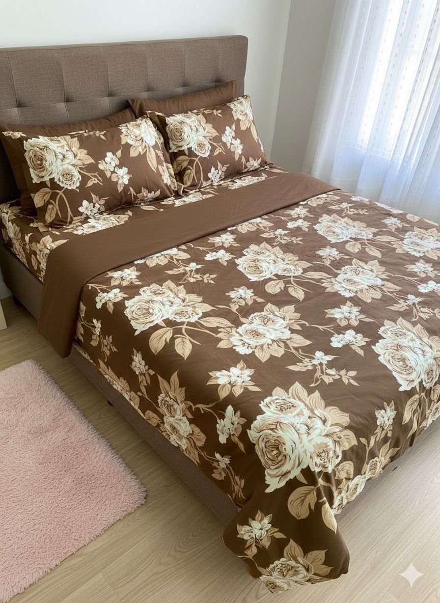 Bring warmth and elegance to your bedroom with our Autumn Bloom bedsheet. Featuring delicate brown flowers on a soft neutral base, this design adds a cozy, earthy, and sophisticated touch to any space. Perfect for creating a calming and inviting atmosphere, it blends beautifully with both modern and classic interiors.