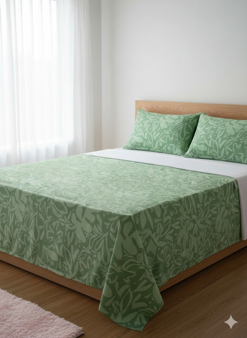 Bring the serene beauty of nature into your bedroom with this luxurious solid green bedsheet. Its rich, calming green shade creates a fresh and relaxing atmosphere, perfect for unwinding after a long day.